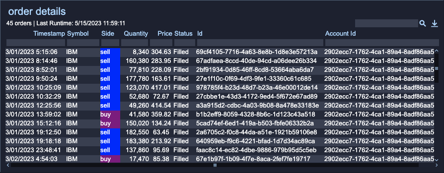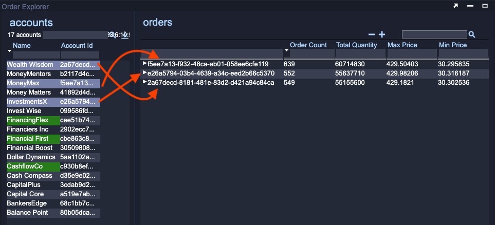 You can now select combinations of Account Id and Symbol in the orders Tree Grid Visualization and see the details for all matching orders in the order details Table Visualization.