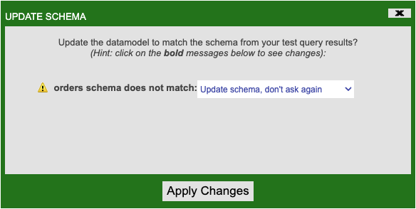 - Click Apply Changes on the Update Schema window that pops up.
